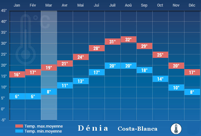 Le climat est agréable pour partir en voyage à Dénia de Mars à